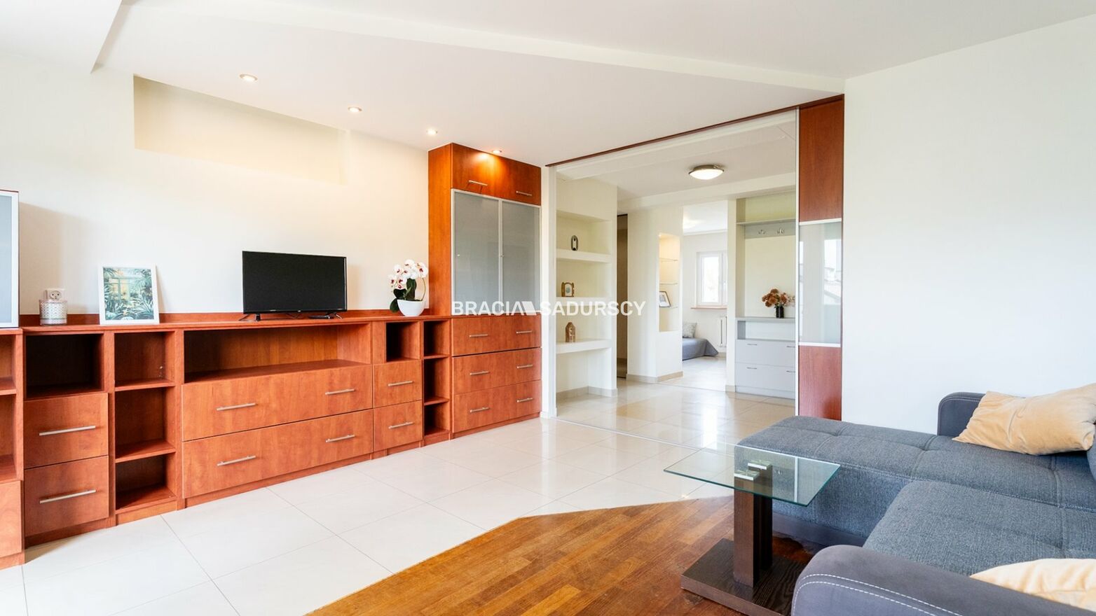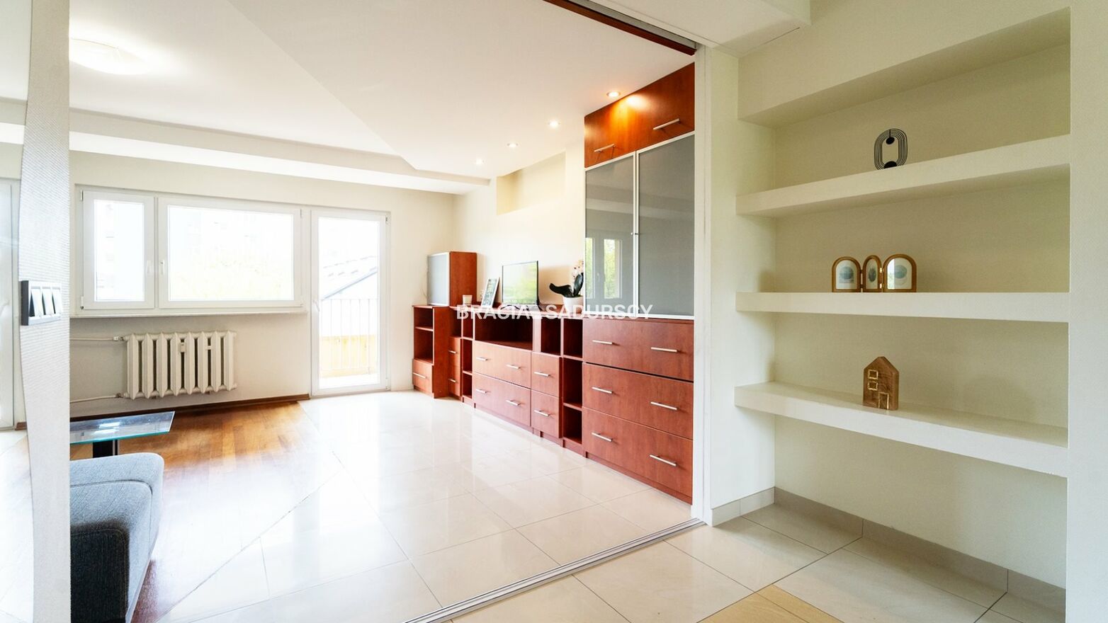 Salon (18,5 m²) - słoneczny, z wyjściem na przestronną loggię, idealną na poranną kawę lub relaks po pracy,