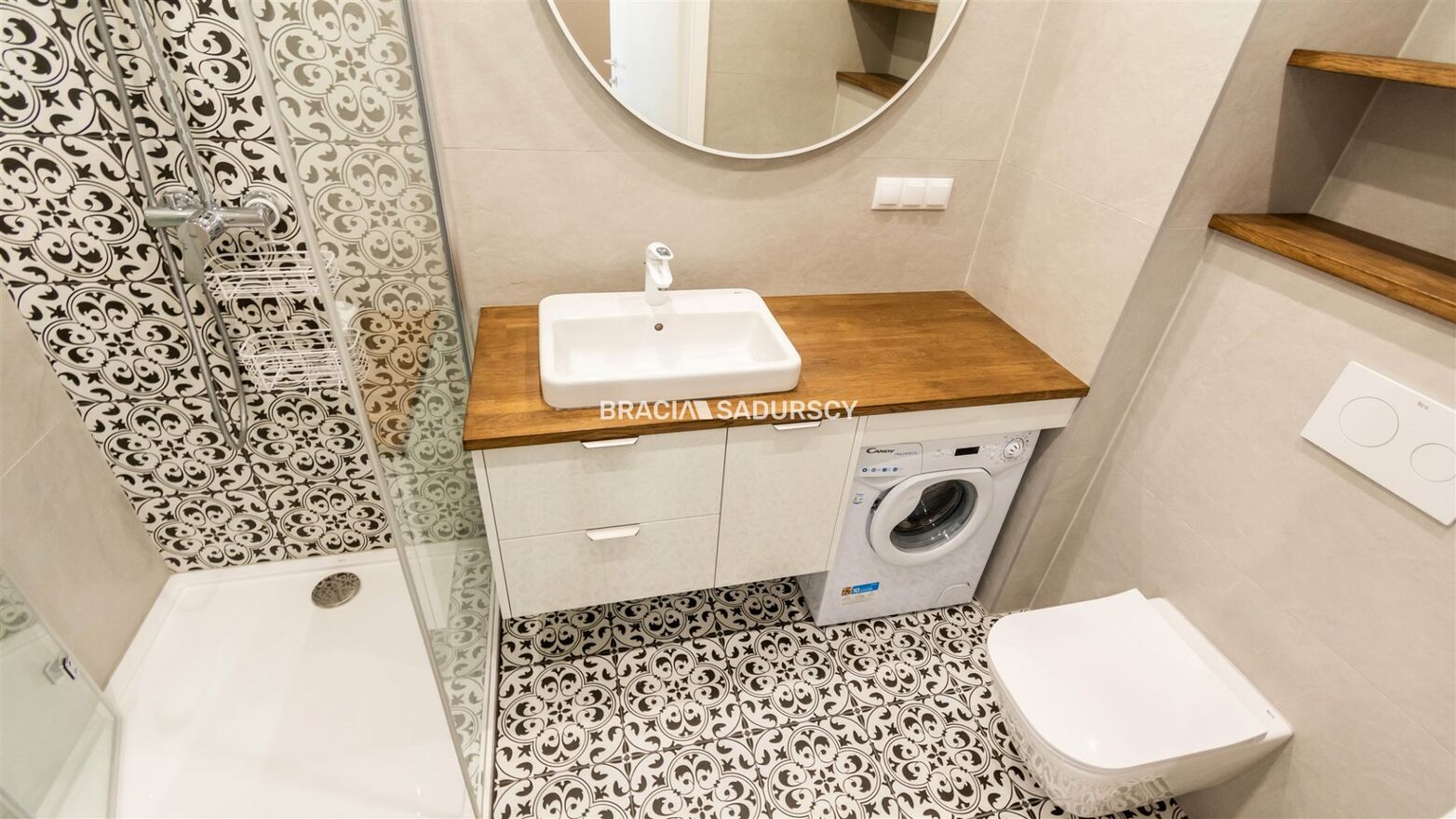 Całość mieszkania zaprojektowana bardzo funkcjonalnie , spokojnie pomieści 1 lub 2 osoby. W przedpokoju pojemna szafa w zabudowie, w kuchni dużo szafek do przechowywania, w sypialni szafa ubraniowa. W kuchni nowe sprzęty AGD: designerska lodówko-zamrażalka, płyta indukcyjna, okap, piekarnik (brak zmywarki). W sypialni łóżko podwójne, w salonie sofa (nierozkładana). Z salonu wyjście na balkon, gdzie w ciepłe wieczory można rozkoszować się winem lub kawą. Ogrzewanie oraz ciepła woda miejskie, brak gazu. Do mieszkania przynależy także komórka lokatorska. Miejsca parkingowe ogólnodostępne za szlabanem dla mieszkańców.
