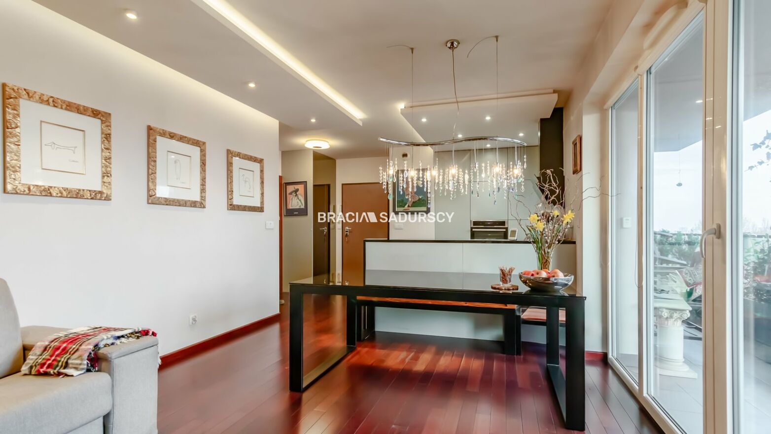 - salonu wraz z aneksem kuchennym oraz wyjściem na 17 m balkon,