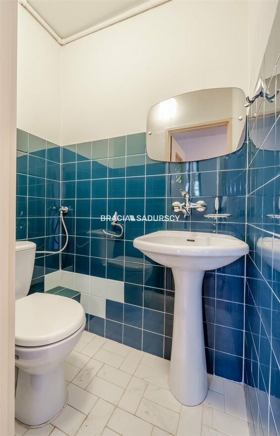 Wyposażenie łazienki: wanna, umywalka, pralka, lustro |