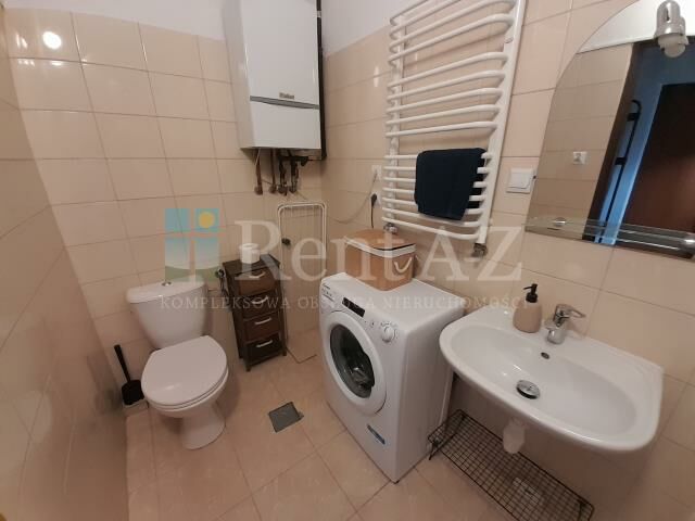 Na podłogach - wysokiej jakości panele, w łazience terakota. Nowe okna i stolarka drzwiowa. Mieszkanie wymaga doposażenia w zakresie mebli, zostaną one dokupione przez Właściciela po konsultacji zapotrzebowania z nowym Najemcą. Umeblowana i wyposażona kuchnia: szafki kuchenne, piekarnik, płyta elektryczna, okap. Komfortowa łazienka, w której znajduje się wanna, umywalka, WC i pralka.