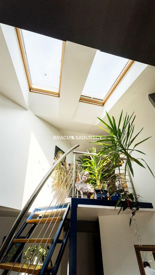 Powierzchnia mieszkania została maksymalnie zagospodarowana z dbałością o funkcjonalność i ergonomię układu. Rozkład obejmuje salon z aneksem kuchennym, 3 niezależne sypialnie na poziomie podstawowym oraz 2 dodatkowe sypialnie na antresolach, łazienkę, osobne WC, balkon oraz taras. Mieszkanie jest dwustronne i dobrze doświetlone.