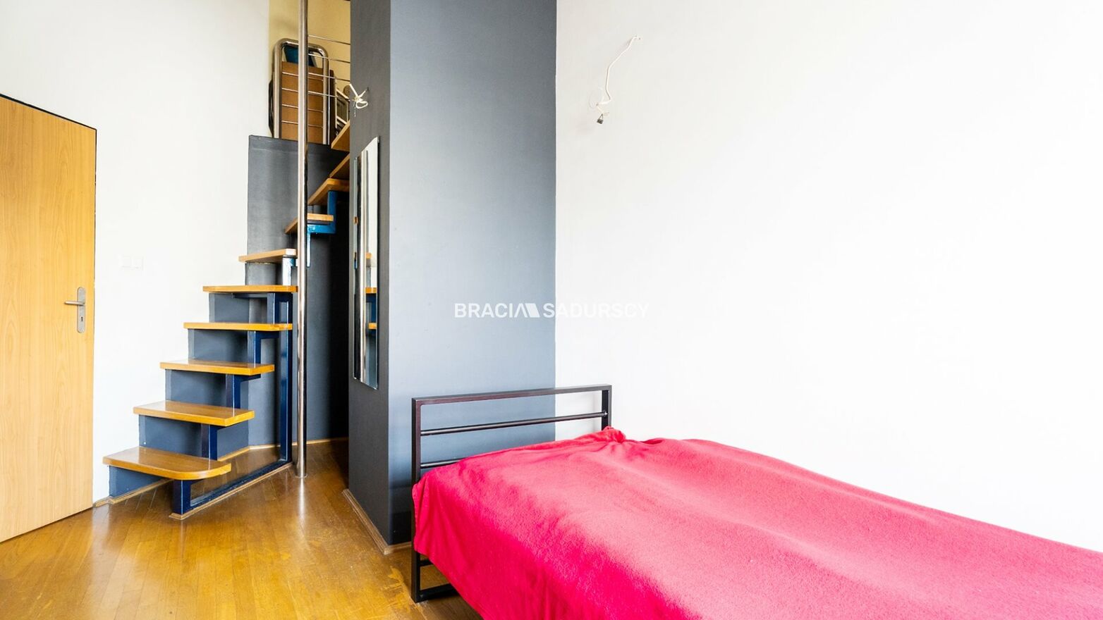Lokal znajduje się na czwartym piętrze czteropiętrowego budynku, na ogrodzonym i zamkniętym osiedlu przy ul. Saskiej 7 w Krakowie.