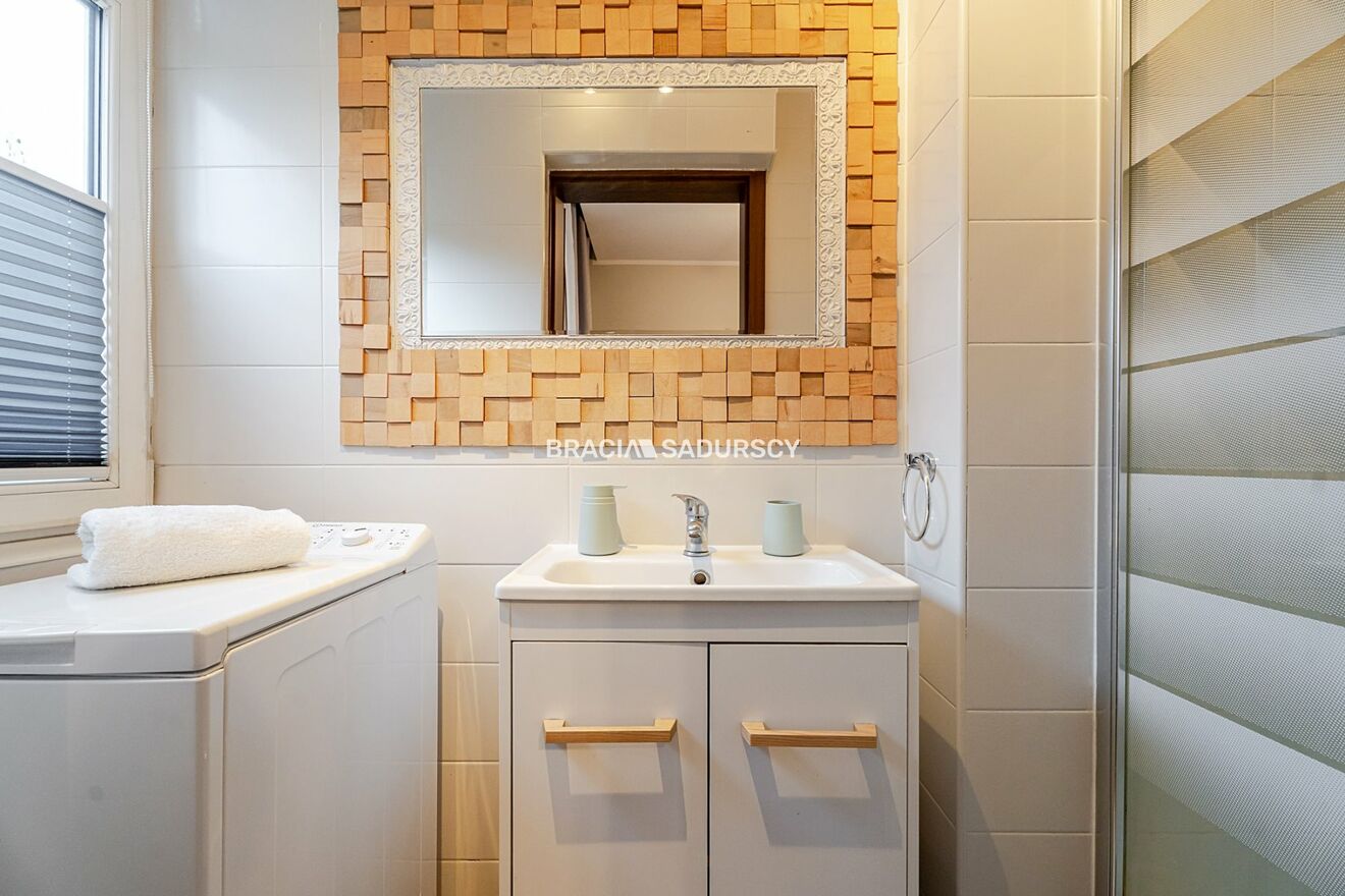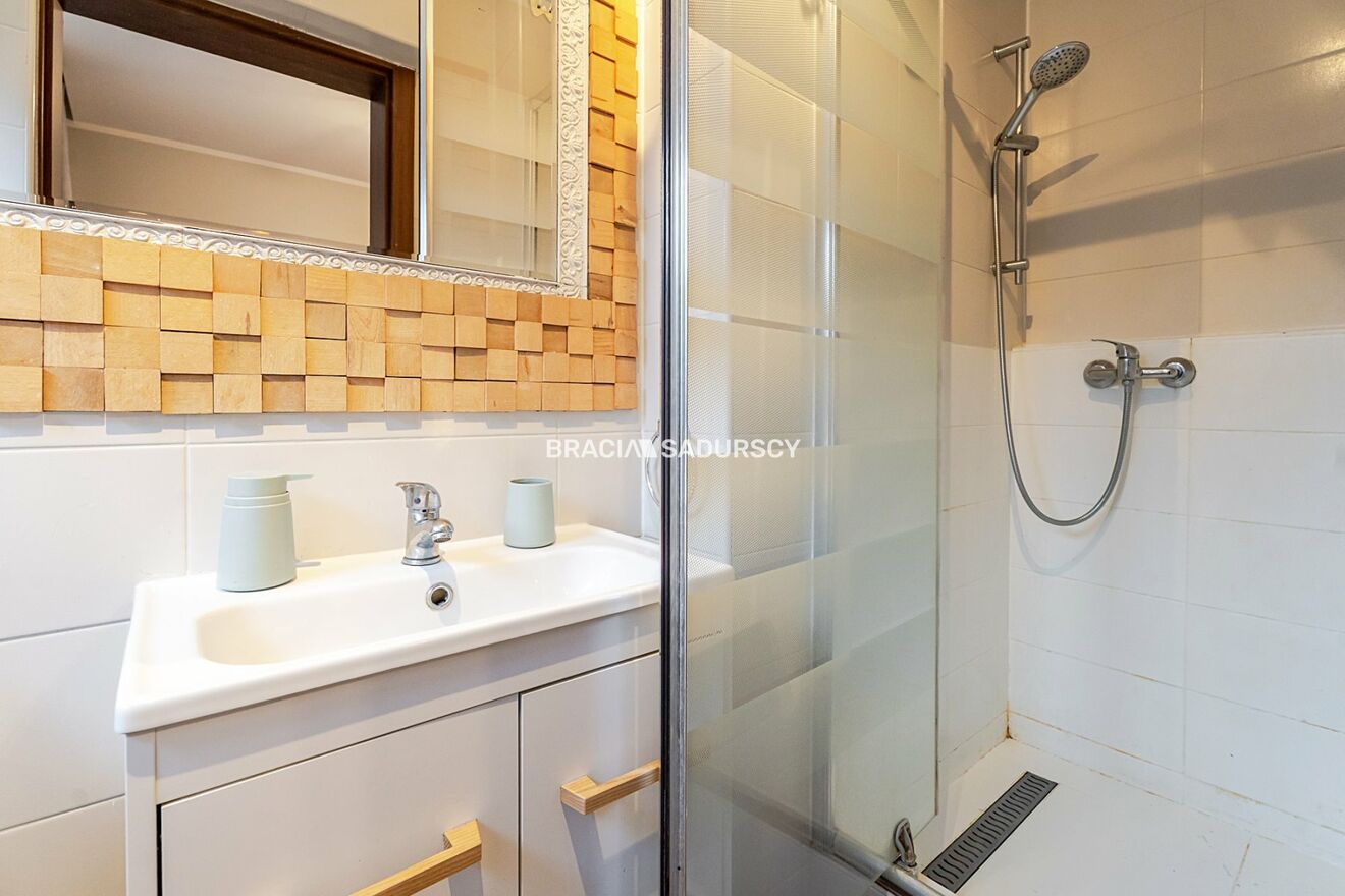 Wyposażenie łazienki: umywalka, lustro, kabina prysznicowa |