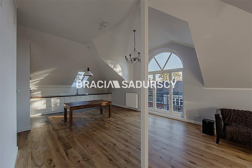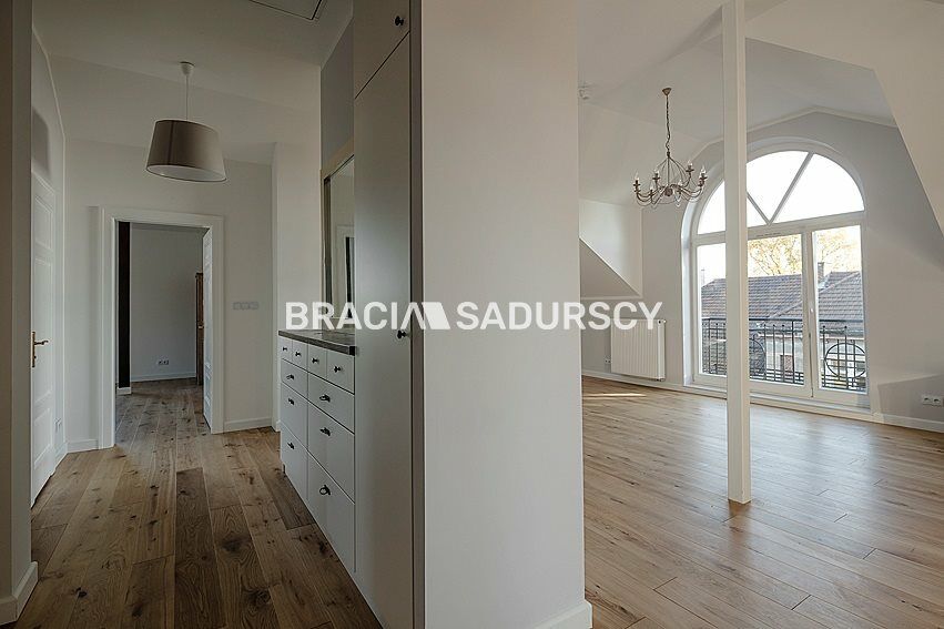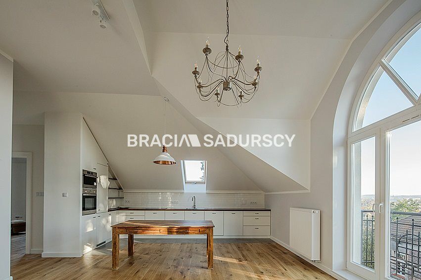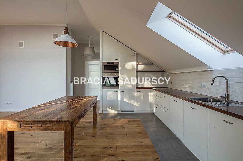 Mamy przyjemność zaprezentować na wynajem mieszkanie położone na 3 piętrze pięknie odrestaurowanej, kameralnej kamienicy z małym ogrodem. Powierzchnia apartamentu to 114 m2, a jego największe atuty to imponujące doświetlenie dzięki dużym, klasycznym oknom, ponadczasowe wykończenie oraz niesamowity widok na panoramę Krakowa. Mieszkanie jest całkowicie umeblowane, składa się z: salonu, aneksu kuchennego, dwóch sypialni, dwóch łazienek (z wanną i prysznicem), korytarza oraz balkonu. Apartament położony na planie kwadratu dzięki czemu wychodzi na 4 strony świata, oferując niesamowite widoki na kilka dzielnic Krakowa. W budynku nie ma windy ale za to nieruchomość oferuje bardzo miłe, "pet friendly" sąsiedztwo. Ogrzewanie z MPEC. W cenie wynajmu znajduje się telewizja kablowa oraz szybki Internet. Dodatkowo płatne są opomiarowane media oraz opłata za utrzymanie kamienicy w kwocie ok. 1000 zł.