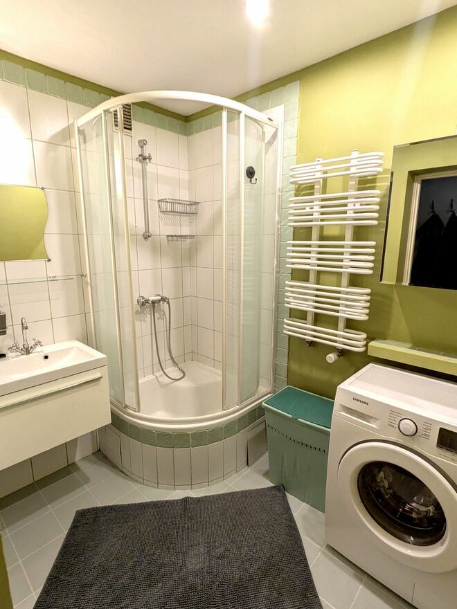 Pralka, mała zmywarka, lodówka z zamrażalnikiem, światłowód, smartTV.