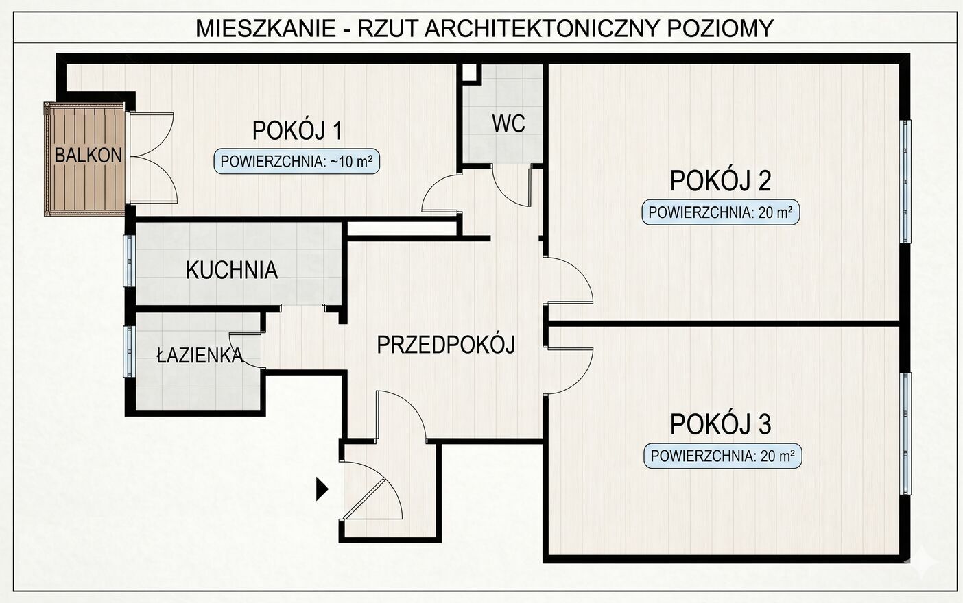 Mieszkanie ul. Mazowiecka 83,1m2 - 3 pokoje bezpośrednio