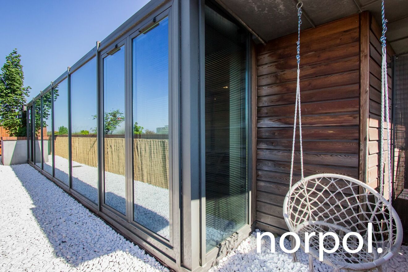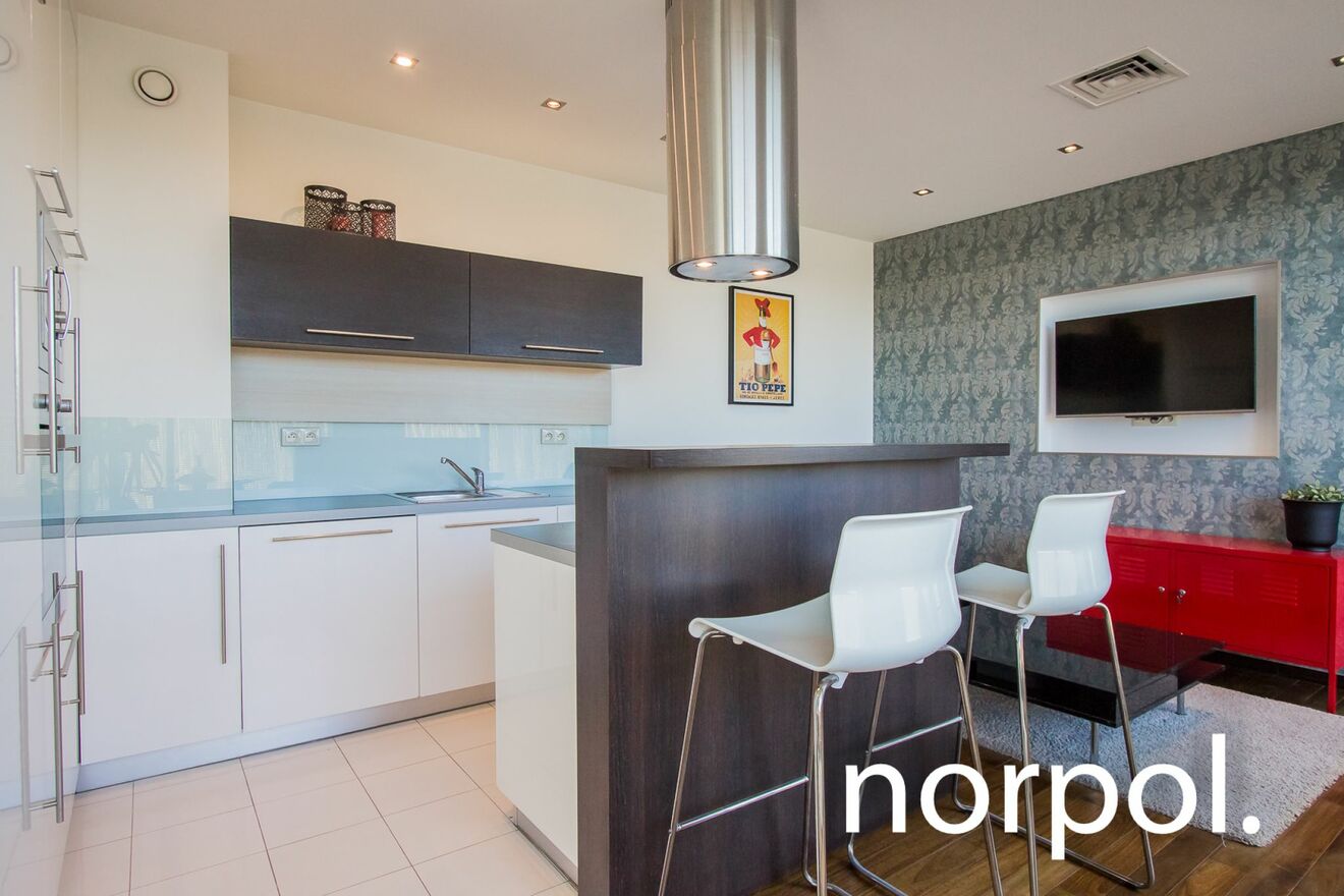 The apartment consists of a beautiful living room with a modern kitchenette, 2 separate bedrooms, a bathroom, an additional toilet, a hall and a private terrace with an area of approx. 30 m2. The apartment is fully equipped and furnished, and has air conditioning, which ensures a comfortable climate all year round