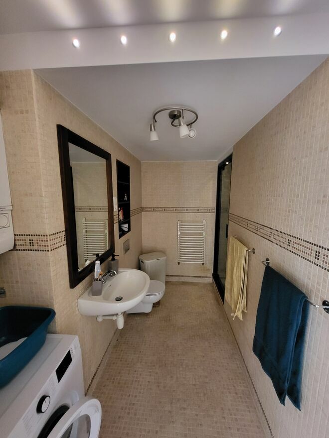 Mieszkanie wyposażone jest we wszystkie niezbędne sprzęty jak płyta gazowa, piekarnik, pralka czy lodówka.
