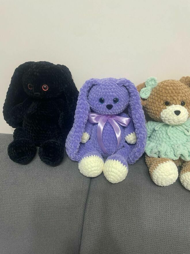 Sprzedam . Misie i króliki miękkie wiązane własnoręcznie . Możliwość wysyłki za pobraniem . Cena dotyczy 1 sztDominik