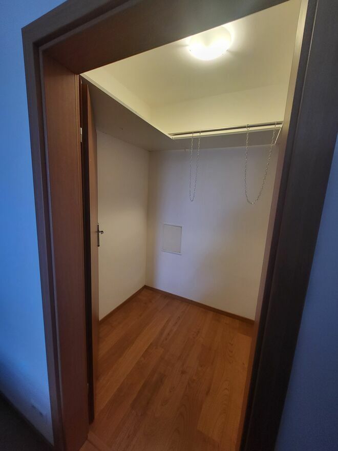 It Is about 55m2, badroom with big wardrobe room inside, kitchen with dishwasher and owen, living room, bathroom with washer-dryer, big balcony with 2 entrance.