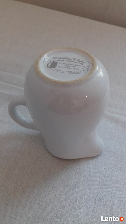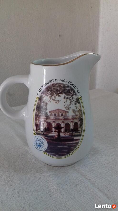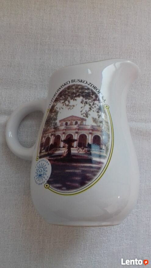 Do sprzedania mlecznik ceramiczny biały ze złotym brzegiem i fotografią Uzdrowiska Busko Zdrój. Produkt z lat siedemdziesiątych ubiegłego wieku (Vintage), wykonany w firmie Wytwarzanie Wyrobów z Ceramiki Szlachetnej w Wałbrzychu, z atestem Państwowego Zakłady Higieny(oryginalna sygnatura). Wymiary w cm: wysokość – 12, średnica maksymalna – 8, średnica podstawy – 5,5.Przedmiot pełnowartościowy.