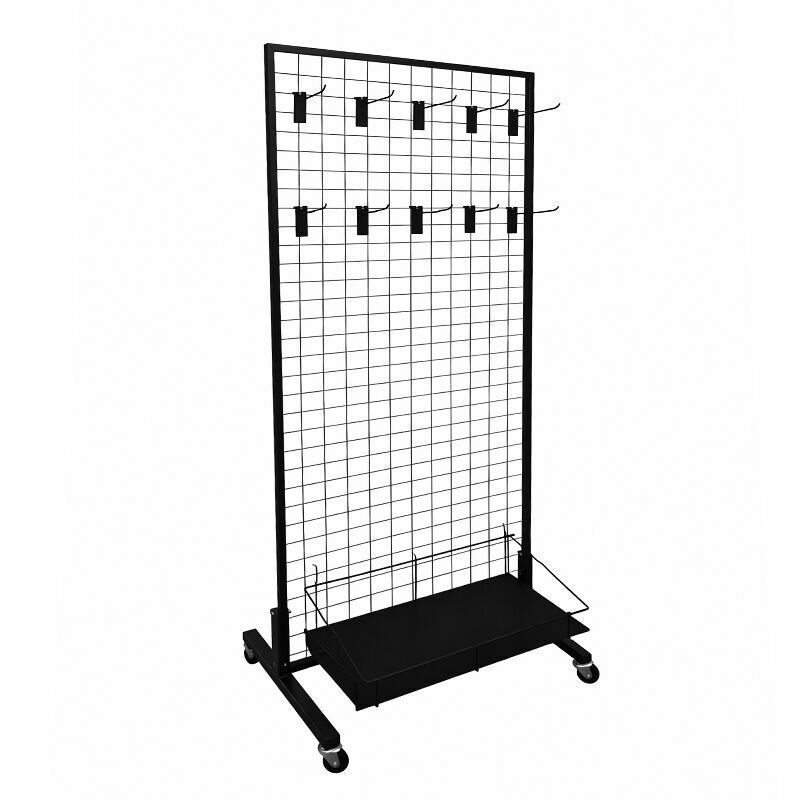 Mobilny regał siatkowy zestaw 1 - z 10 zawieszkami i koszem