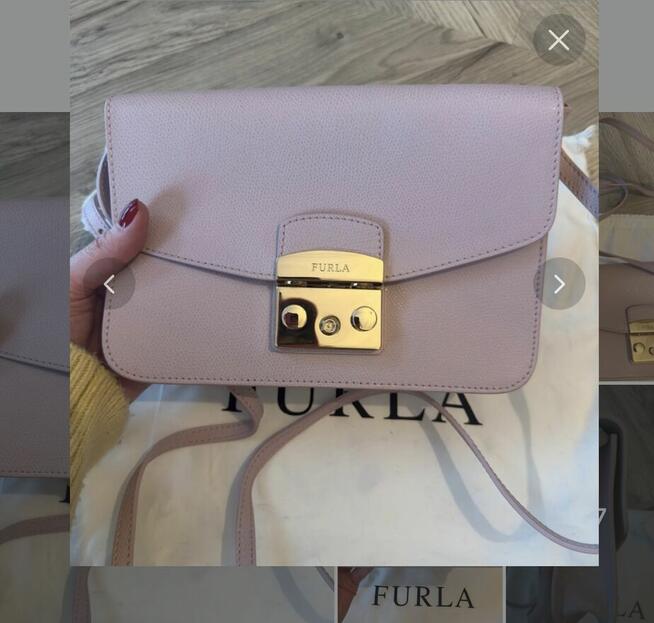 Torebka Furla z kolekcji Metropolis. Jasny/ pudrowy róż. Złote zapięcia, do założenia na ramię bądź przez ramię. ...