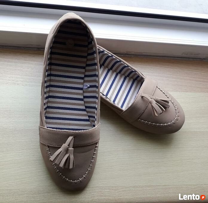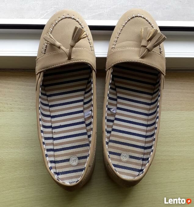 Zapraszam do zakupu beżowych mokasynów. Butki były mało noszone, nie mają wyraźnych śladów użytkowania, jedynie środek wymaga odświeżenia.Rozmiar 40.