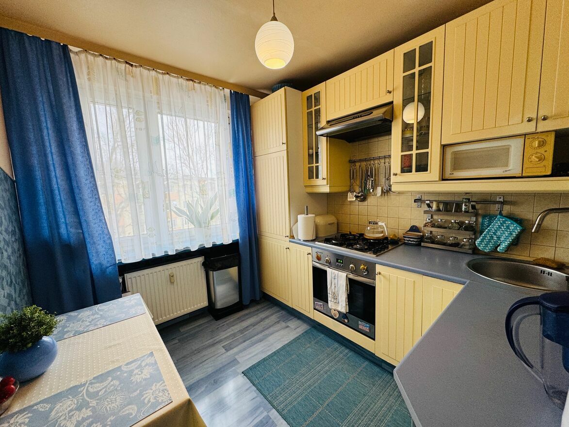 Na sprzedaż 2-pokojowe mieszkanie o pow. 41,96 m² usytuowane na 3 piętrze w trzypiętrowym bloku z lat 60. Nieruchomość jest jasna i dobrze nasłonecznione, ze względu na korzystną ekspozycję północno- południową, dodatkowym atutem nieruchomości jest loggia o powierzchni około 3 m² wychodząca na stronę południową.Wszystkie pomieszczenia w mieszkaniu są wytapetowane, na podłodze znajdują się panele, które w kuchni mają odcień niebieski, a w pozostałych pomieszczeniach imitują kolor jasnego drewna. Łazienka cała w płytkach, w dobry standardzie technicznym. Okna plastikowe, szczelne. Żeliwne grzejniki solidnie utrzymujące ciepło. Do mieszkania doprowadzona jest ciepła woda z sieci miejskiej MPEC. Gotowanie na kuchence gazowej.