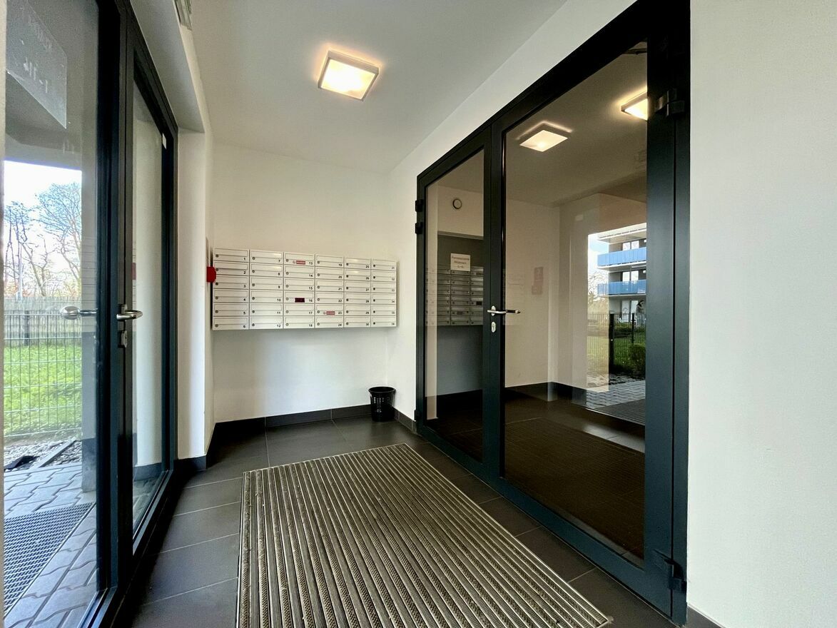 Budynek jest nowoczesny, zadbany, z windą i komfortowymi częściami wspólnymi. Lokalizacja jest bardzo wygodna – w pobliżu znajdują się szkoły, przedszkola, sklepy, punkty usługowe oraz przystanki komunikacji miejskiej. W okolicy dostępne są także tereny zielone i miejsca do rekreacji.