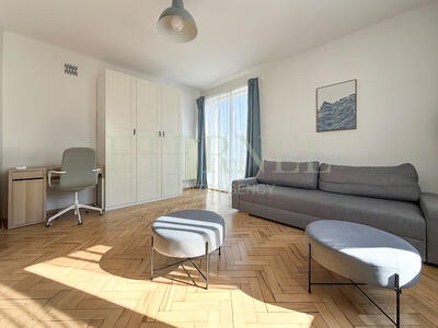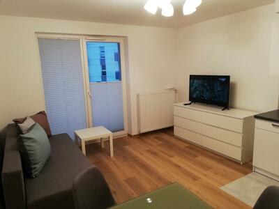 Kawalerka z balkonem, windą, piwnicą, lodówką, pralką, kabiną prysznicową, rozkładaną sofą (jest możliwość jej ...