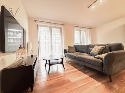 Nowe mieszkanie wyposażone jest m.in.: w klimatyzację, wysokiej jakości sprzęt AGD - zmywarka, piekarnik, płyta ...