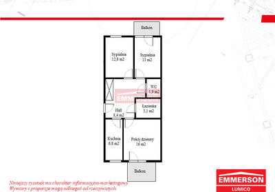 Emmerson prezentuje: mieszkanie o powierzchni 51 m2 na wynajem, składające się z dwóch pokoi oraz osobnej ...