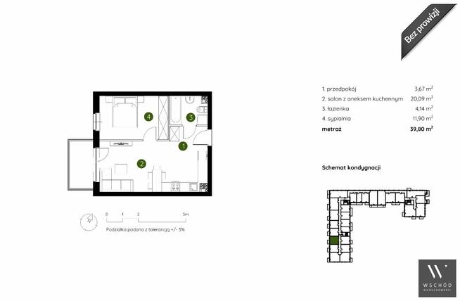 Wszystkie mieszkania dostępne bez prowizji dla Klienta Kupującego Komfortowe 2 pokojowe mieszkanie o pow. 39m2 ...
