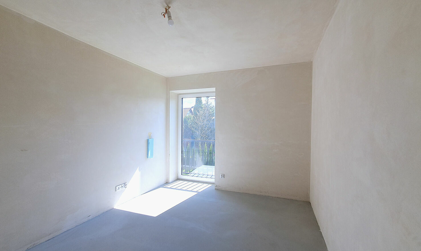 Ważne: Obecnie dojście od frontu, ale istnieje prosta możliwość wykonania schodów z przestronnego balkonu na poziomie +1, tworząc wygodne połączenie z zielenią.