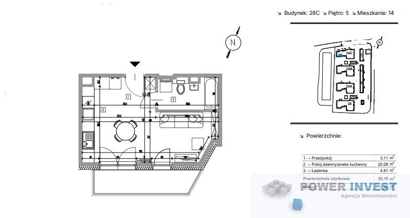 Mam przyjemność zaprezentować funkcjonalne mieszkanie jednopokojoweo powierzchni 28,10 m², zlokalizowane w nowoczesnym budynku
