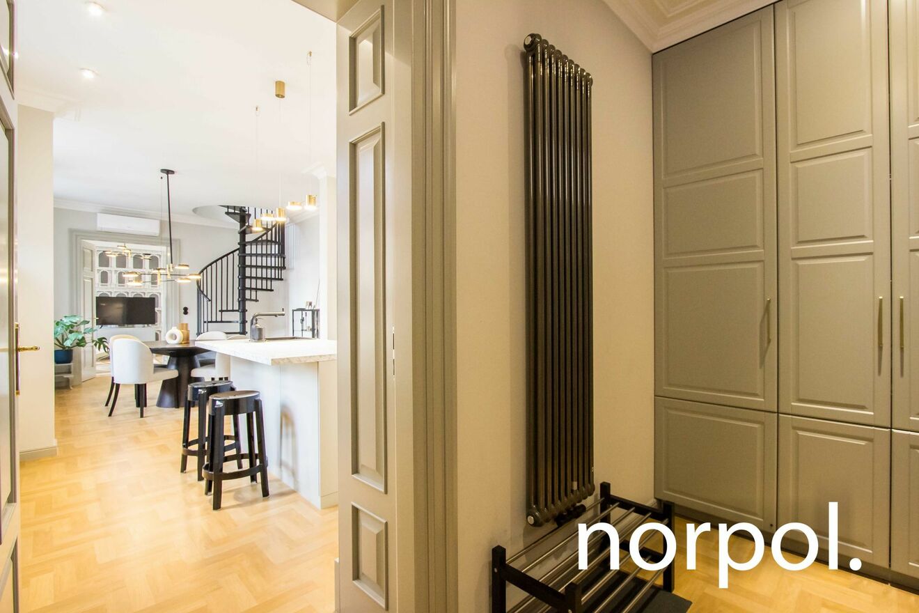 Mieszkanie znajduje się w atrakcyjnym miejscu przy ul. Dietla, które łączy klimatyczne aspekty krakowskiego Starego Miasta i Kazimierza. To doskonała przestrzeń dla tych, którzy cenią sobie życie w centrum historycznej części miasta. Kazimierz to centrum rozrywki, kultury i sztuki, dzielnica która tętni życiem nieprzerwanie przez cały rok. Liczne kawiarnie, puby i restauracje. Ogromnym atutem jest sąsiedztwo Bulwarów Wiślanych z licznymi ścieżkami pieszymi oraz rowerowymi.Mieszkanie o powierzchni 77 m² rozciąga się na dwóch poziomach. Na pierwszym znajduje się przestronny hall z dużą szafą, łazienką z kabiną prysznicową i toaletą, jasnego salonu z kuchnią i wyspą kuchenną, jadalnią z dużymi oknami z ekspozycją południowo – zachodnią oraz salonem który można oddzielić zamykając dwuskrzydłowe drewniane drzwi.