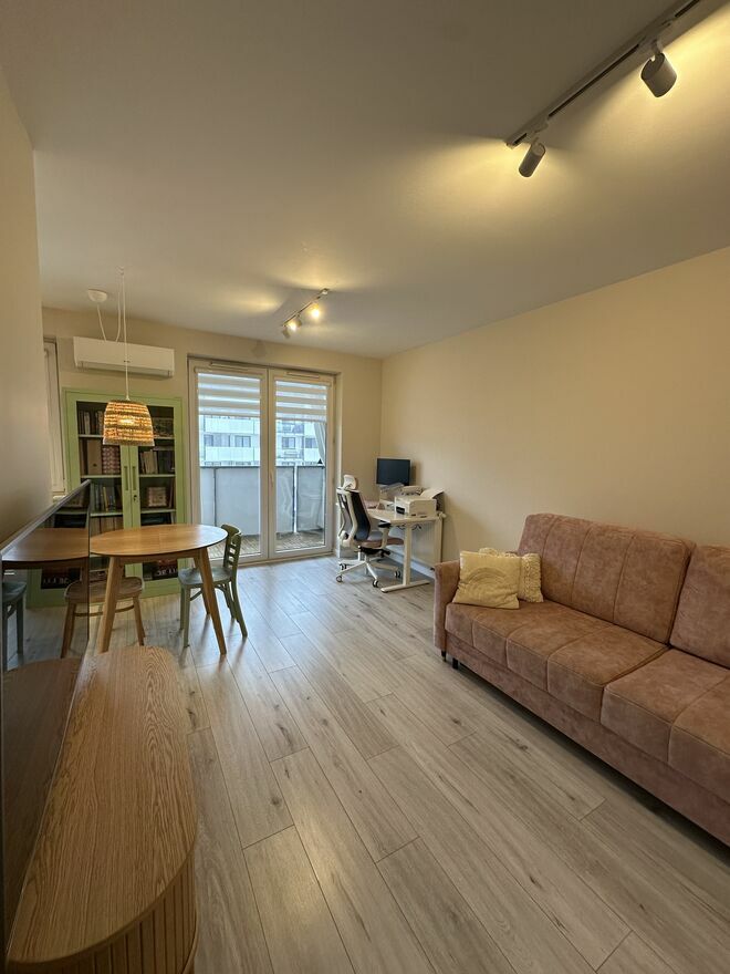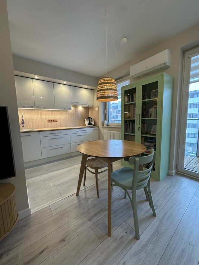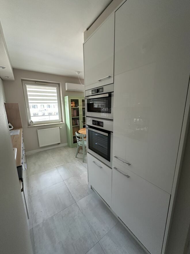 Sprzedaję nowoczesne mieszkanie o powierzchni 46,76 m², usytuowane na trzecim piętrze. Budynek z 2016 roku jest wykonany z betonu zbrojonego i posiada windę. Mieszkanie jest w pełni umeblowane, a dodatkowo masz dostęp do balkonu, garażu i klimatyzacji. Ogrzewanie miejskie zapewnia komfort przez cały rok.