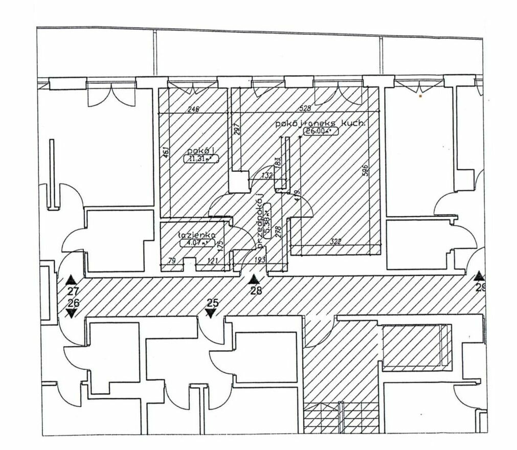 Pokój z aneksem kuchennym 26 m² (w tym wydzielona garderoba 4,5 m²)