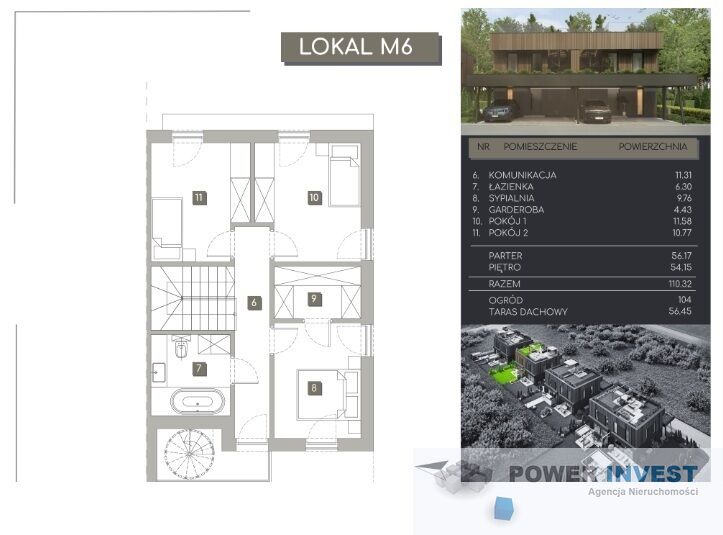 Każdy z domów posiada powierzchnię około 110,32 m², prywatny