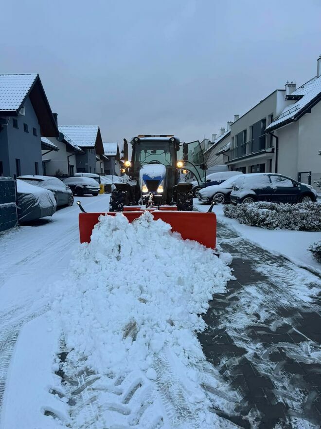 Odśnieżanie parkingów placów osiedli usuwanie śniegu traktor