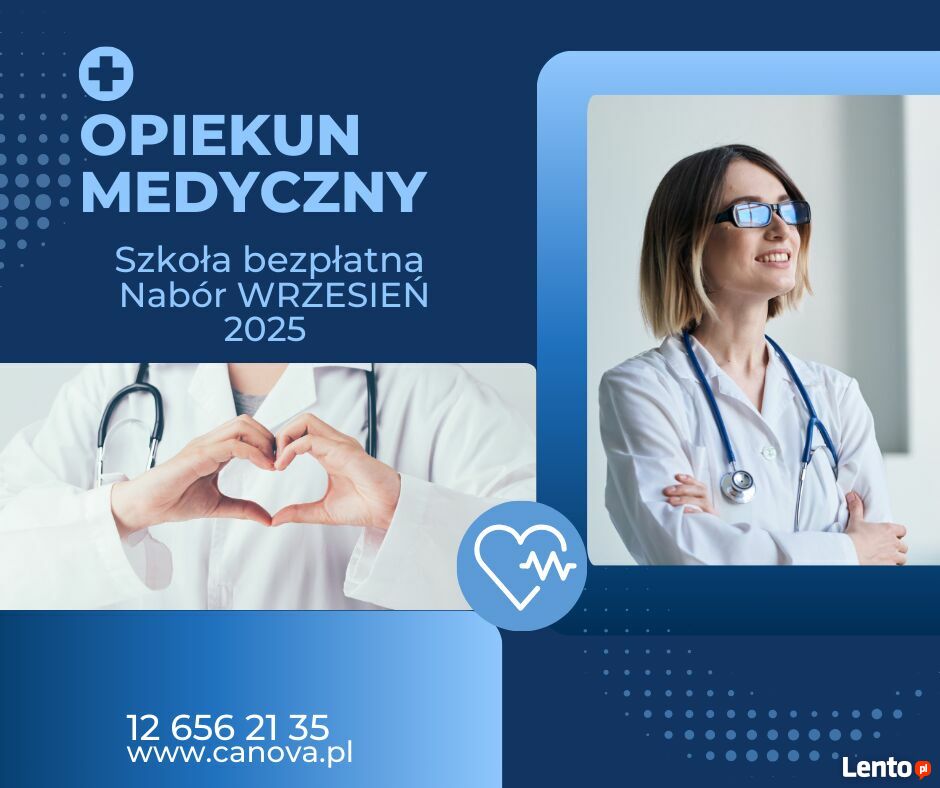 Trwa rekrutacja do Szkoły Policealnej CANOVA na bezpłatny kierunek Opiekun medyczny.Nabór: LUTY 2026 r.