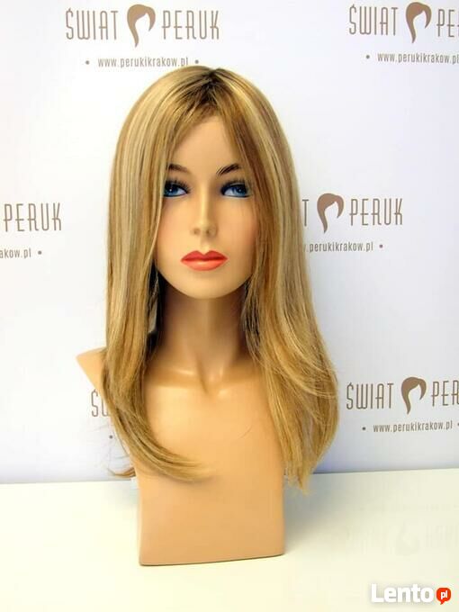 Peruka długa w kolorze jasnego blondu z refleksami, z wysokiej jakości włosa naturalnego.Model dostępny w wielu kolorach i odcieniach.