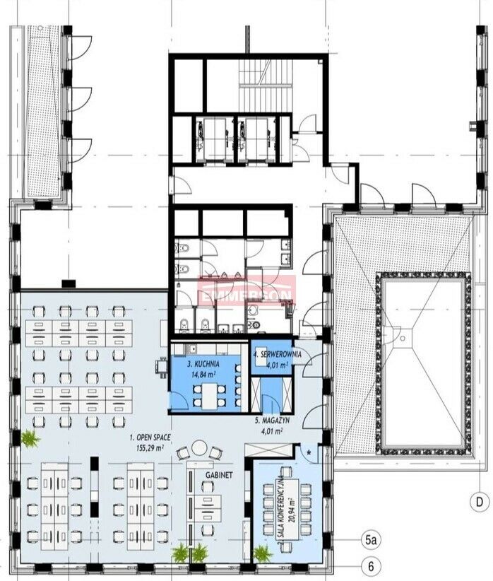 Powierzchnia biurowa 213.74 m2 NLA (powierzchnia najmu brutto: 253.89m²)