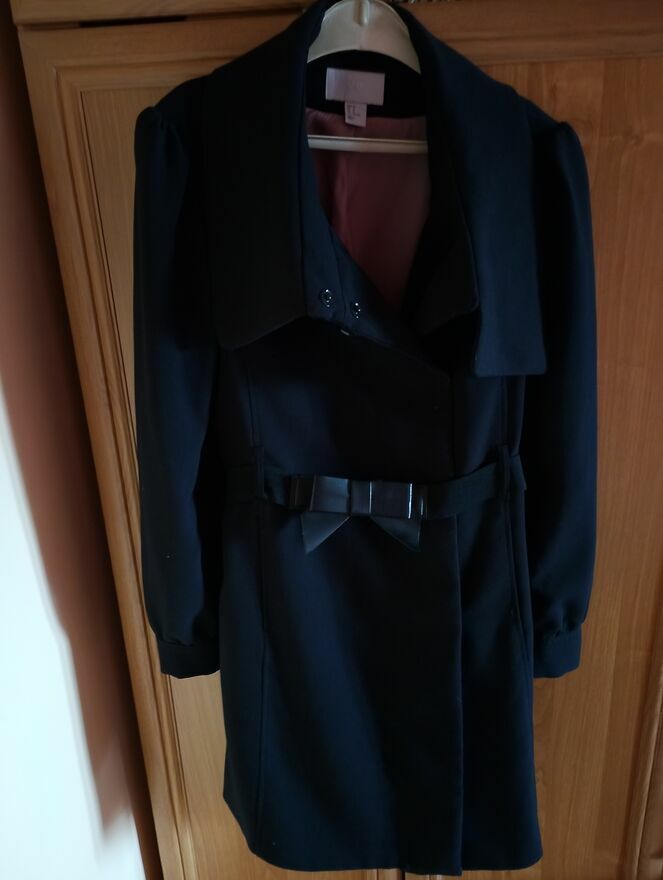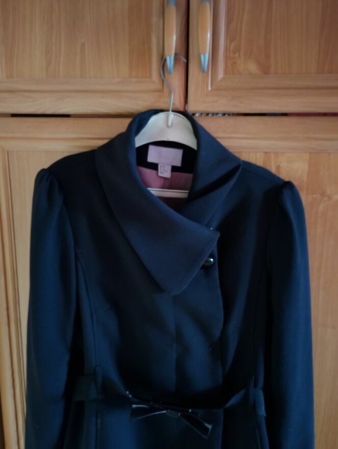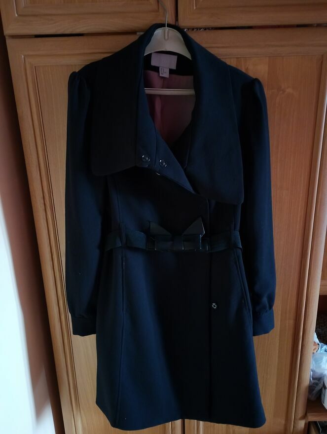 Płaszcz damski czarny z paskiem ozdobnym .Rozmiar L/XL Możliwy odbiór osobisty.KrakowJolka