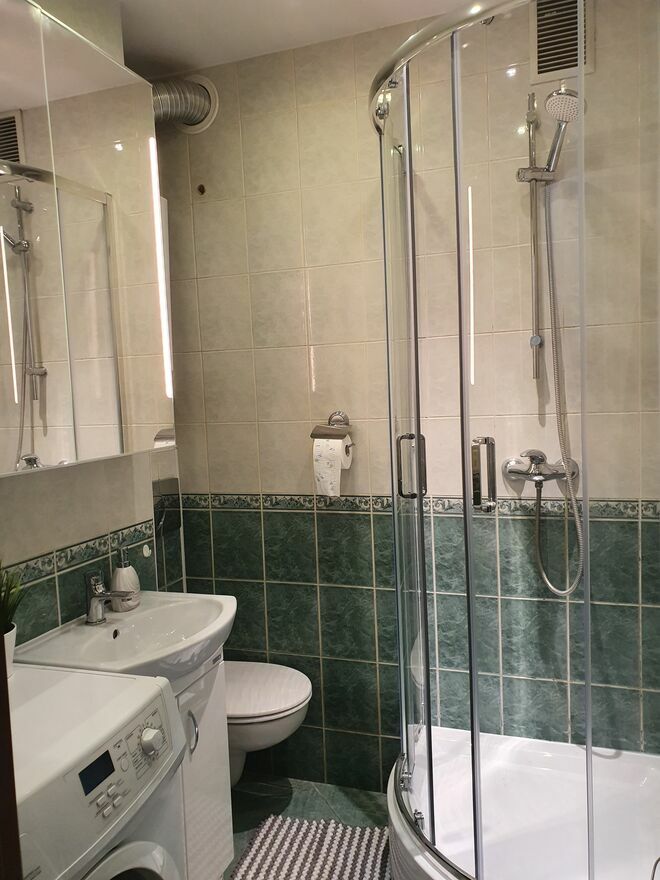 Mieszkanie o powierzchni 51 m2 znajduje się na parterze 4 piętrowego monitorowanego budynku. Składa się z 2 pokoi wyposażonych w nowe meble, oddzielnej jasnej kuchni, łazienki z WC, dużego przedpokoju z szafą i biblioteczką w zabudowie.Wyposażenie: Mieszkanie w pełni wyposażone (lodówka, pralka, zmywarka, mikrofalówka, suszarka na pranie, żelazko, deska do prasowania, odkurzacz, naczynia).