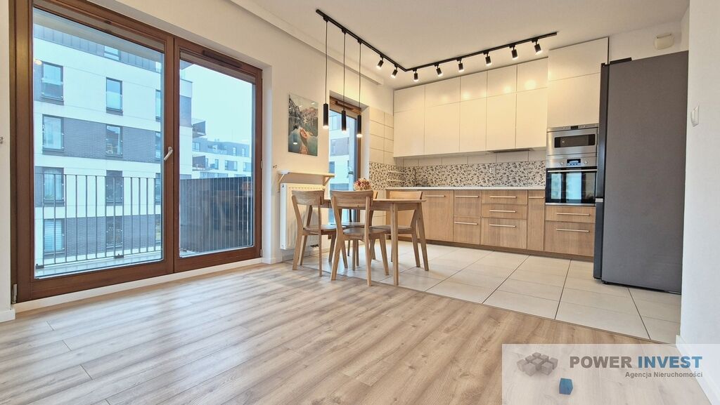 Funkcjonalny układ, przestronny salon z aneksem kuchennym z wyjściem