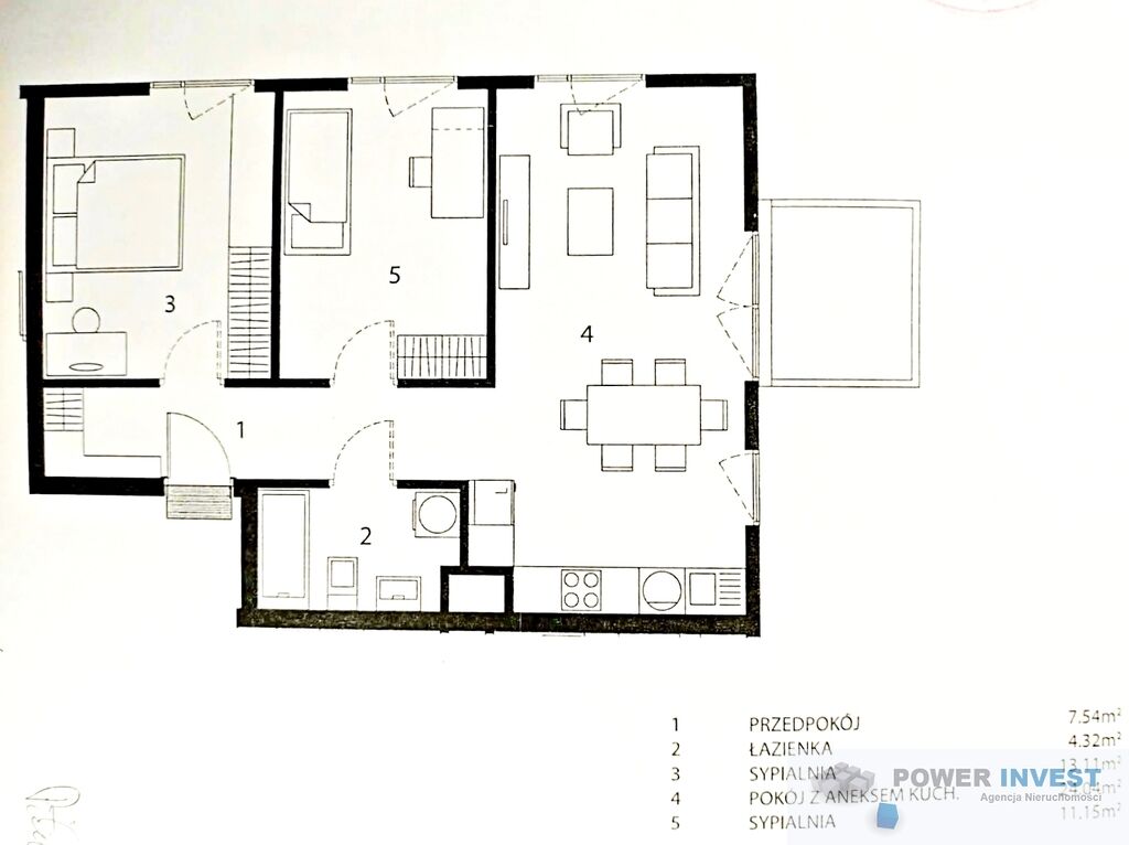 sypialnia o pow. 13,11 m2przedpokój o pow. 7,54 m2 łazienka o pow.