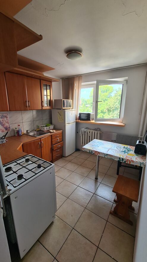 Mieszkanie w sumie jest dla 3 osób. Dostępne od zaraz dla spokojnych i nie palących osób. W mieszkaniu znajduje się osobna toaleta i łazienka (z pralką, wanną, umywalką) oraz kuchnia (kuchenka gazowa, mikrofalówka, lodówka z zamrażarką). Ogrzewanie miejskie. Jest jeszcze jeden pokój do wynajęcia od zaraz za 950zl.