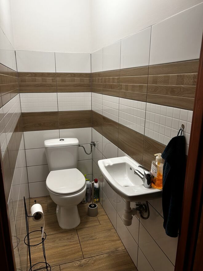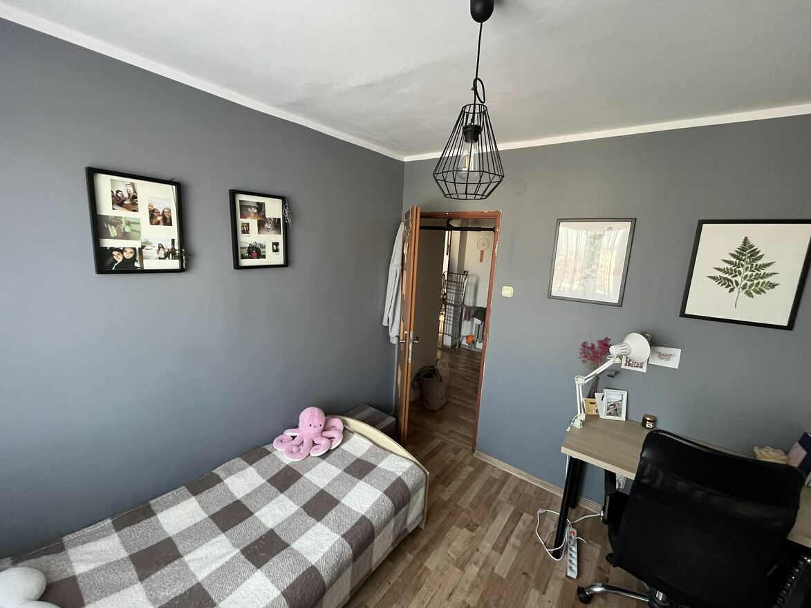 Pokój jest umeblowany, zawiera łóżko, szafę i biurko z krzesłem. W mieszkaniu znajduje się kuchnia z piekarnikiem i płytą grzewczą oraz łazienka z pralką i osobną toaletą.