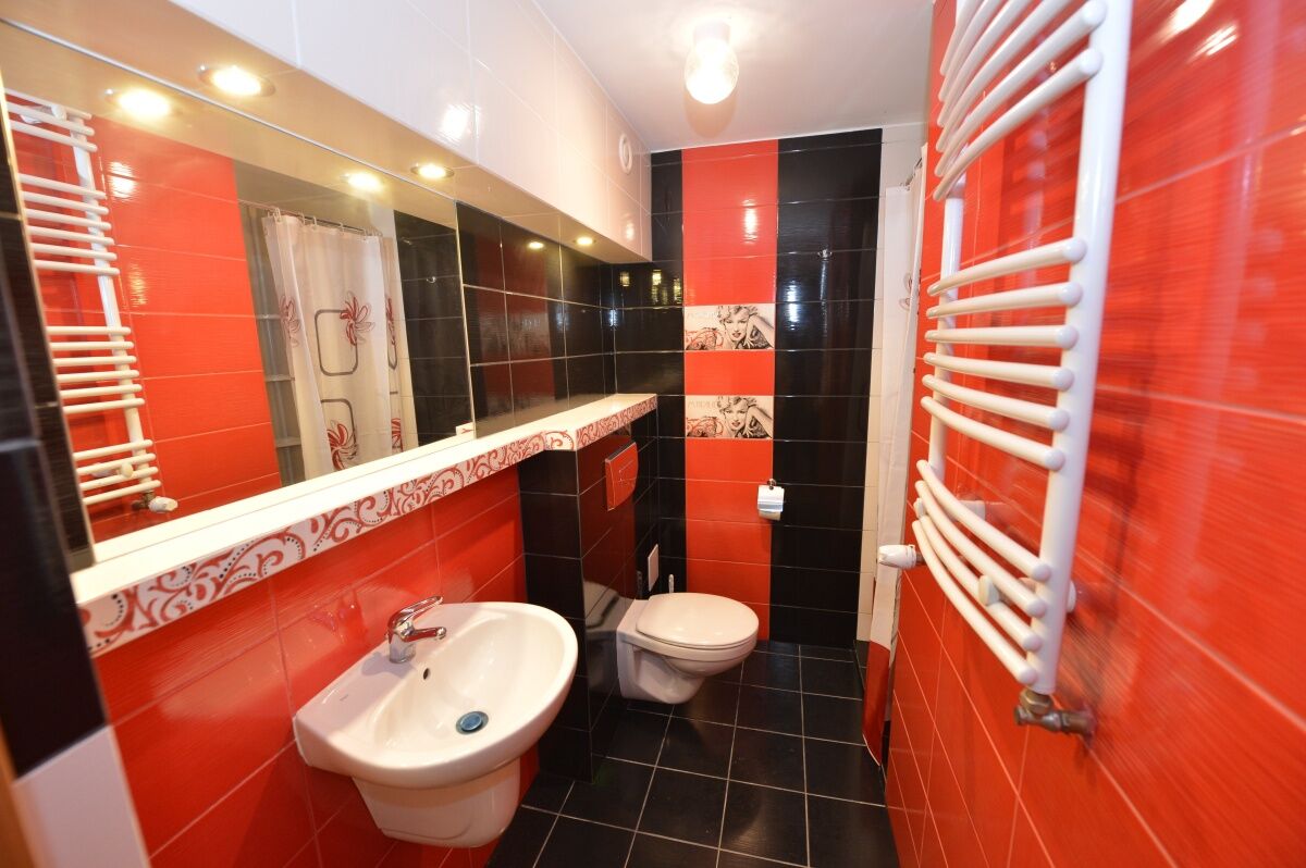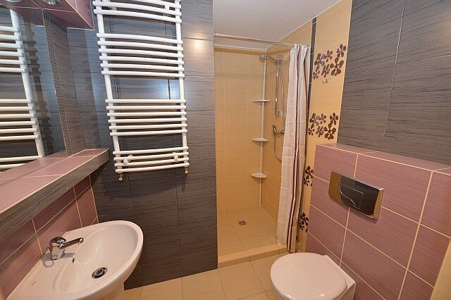 Dodatkowo 2 funkcjonalne i wygodne łazienki z prysznicem i wc do wyboru, pralko-suszarka , żelazko, deska do prasowania i w pełni wyposażana kuchnia w AGD , Piekarnik, Płyta Indukcyjna, mikrofala, czajnik, na wyłączność prywatna Lodówka i inne