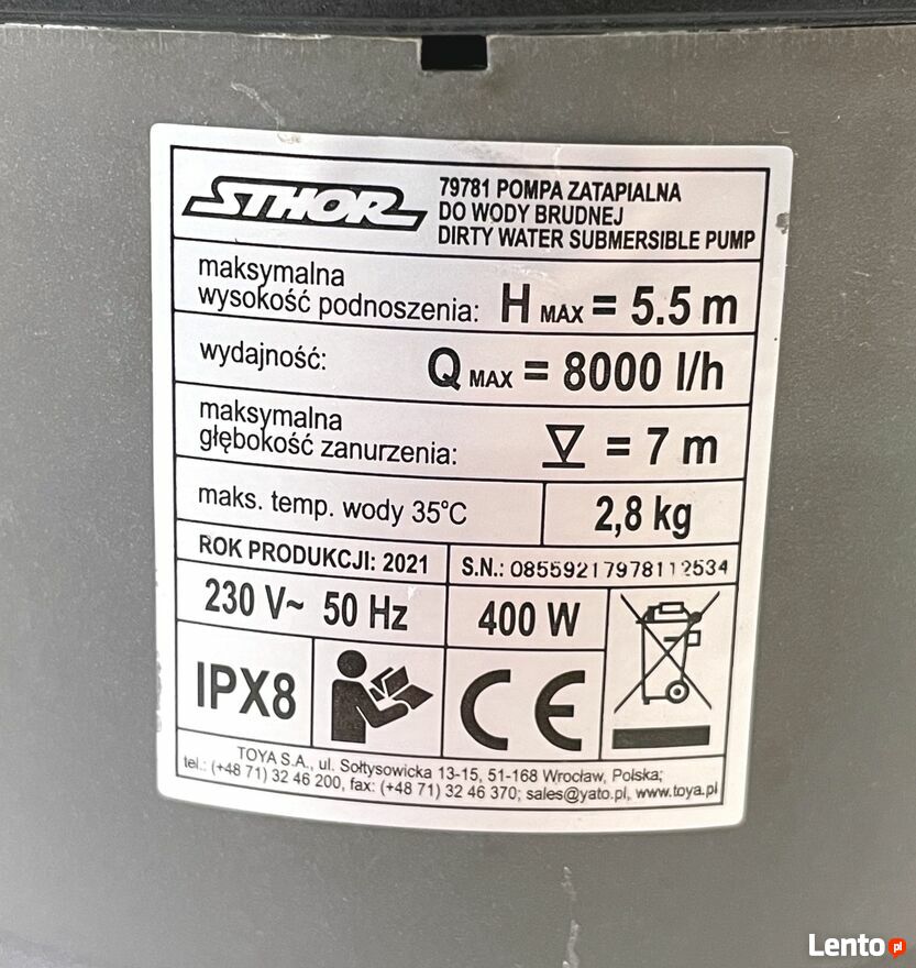Pompa zanurzeniowa do brudnej wody 400W STHOR