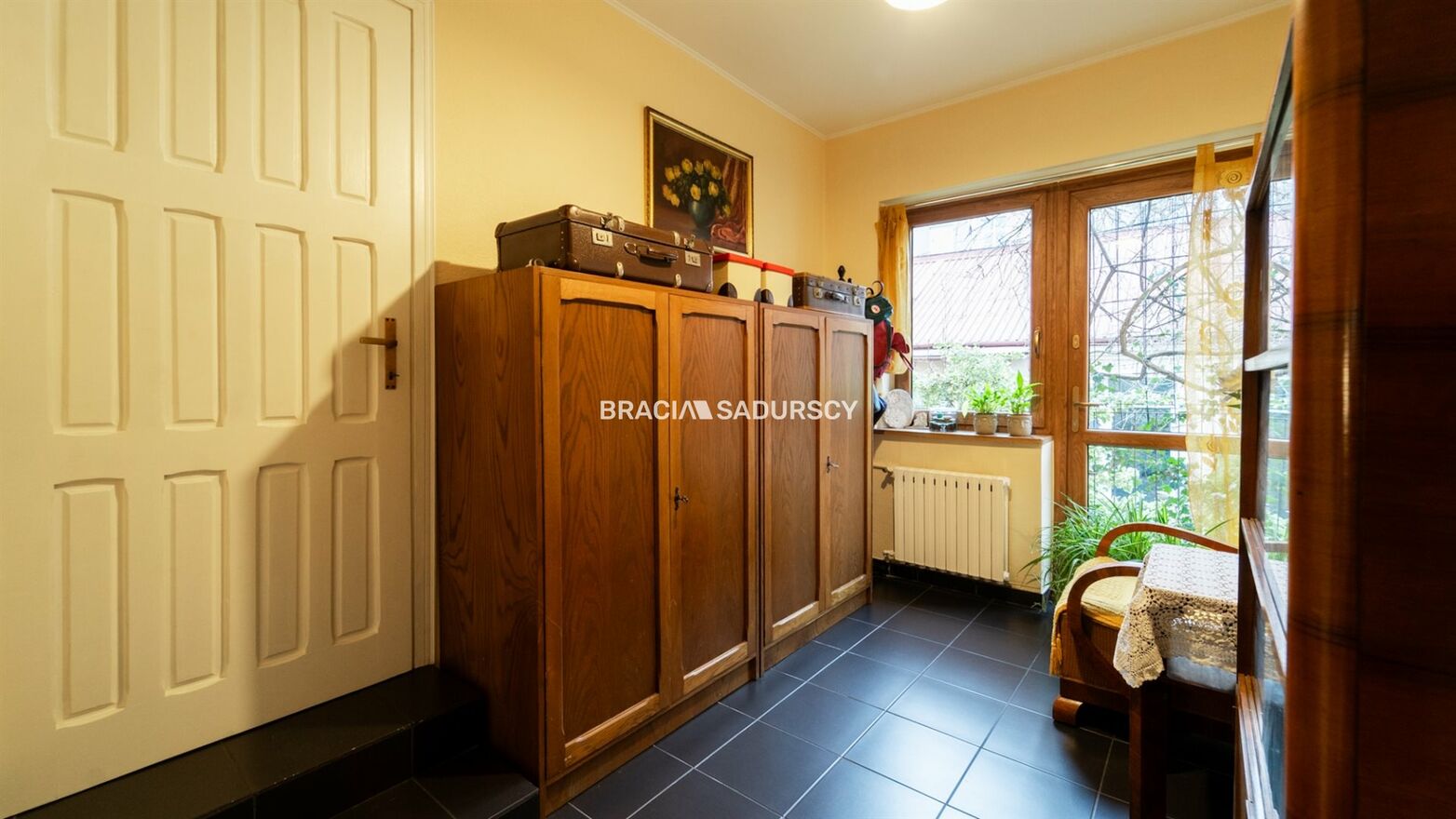 Okna i drzwi są drewniane, w bardzo dobrym stanie. Na podłogach, w zależności od pomieszczenia znajduje parkiet, płytki ceramiczne, panele lub wykładzina. Część pomieszczeń została odnowiona, niektóre wymagają odświeżenia.