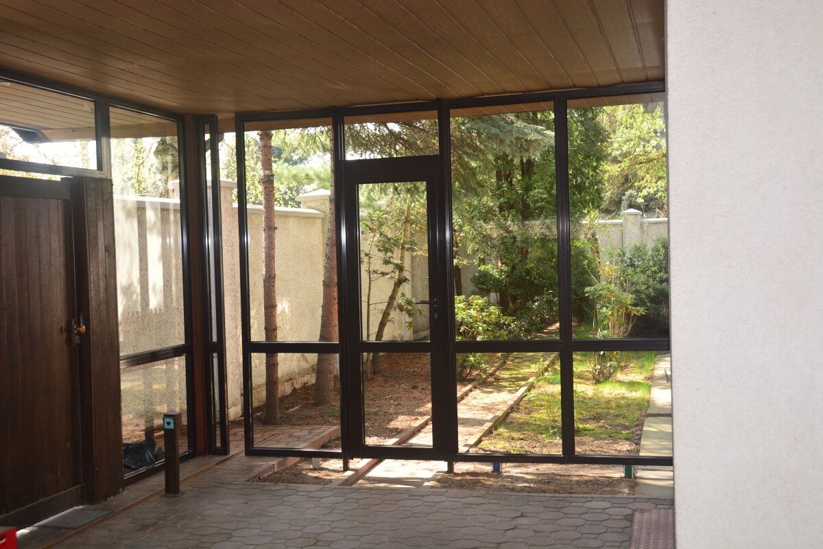 Budynek wyposażony jest w okna aluminiowe, rolety zewnętrzne, system alarmowy oraz klimatyzację z funkcją grzania.