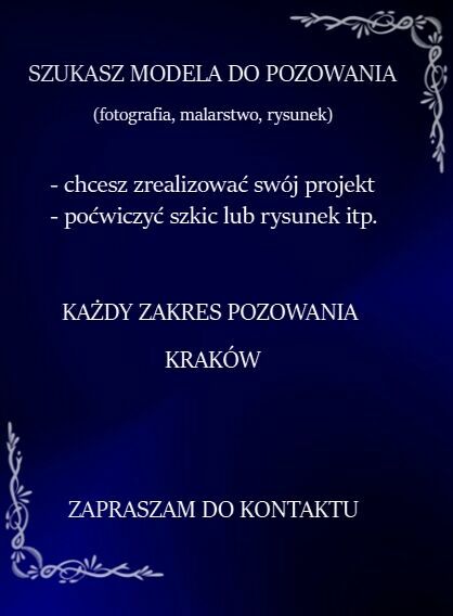 Może ktoś z Państwa szuka osoby do pozowania. Rysunek, zdjęcia itd....Pozuje amatorsko zainteresowanym osobom w pełnym zakresie na terenie Krakowa.