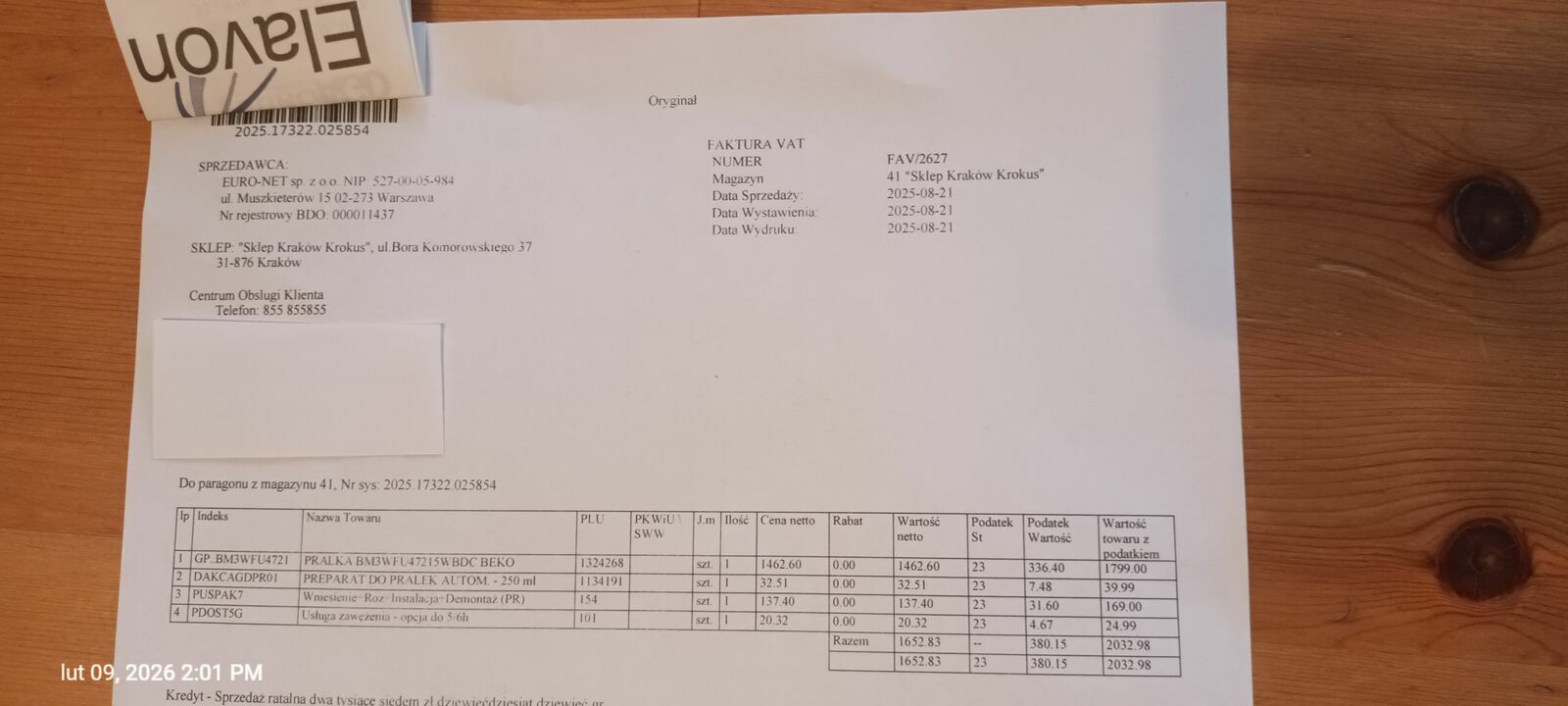 - Możliwy odbiór osobisty