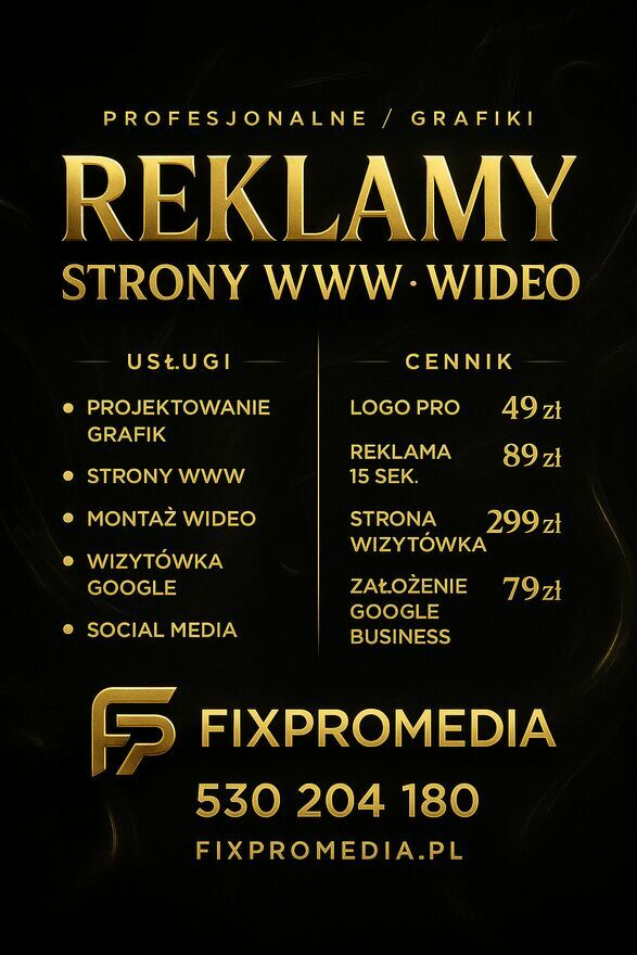 Potrzebujesz skutecznej reklamy, grafiki, strony WWW lub wideo, które naprawdę przyciągną klientów? Oferuję szybkie i profesjonalne realizacje dla firm i osób prywatnych. Pracuję 24/7, odpowiadam od ręki, ceny jasne i bez ukrytych kosztów.Tworzę reklamy, które sprzedają — nie tylko wyglądają.