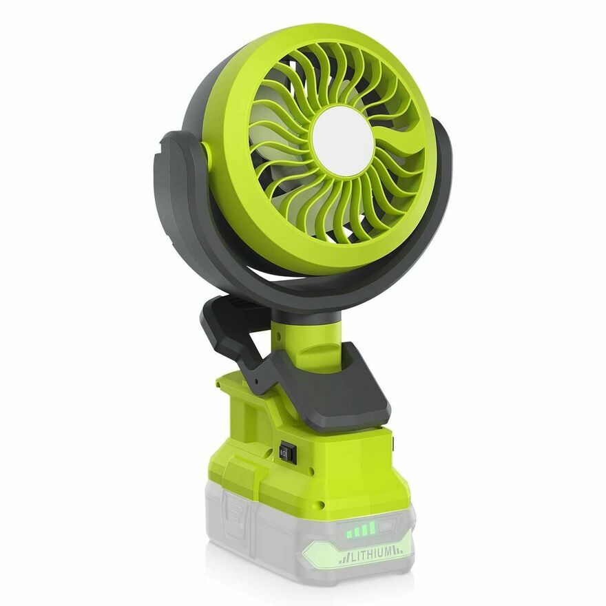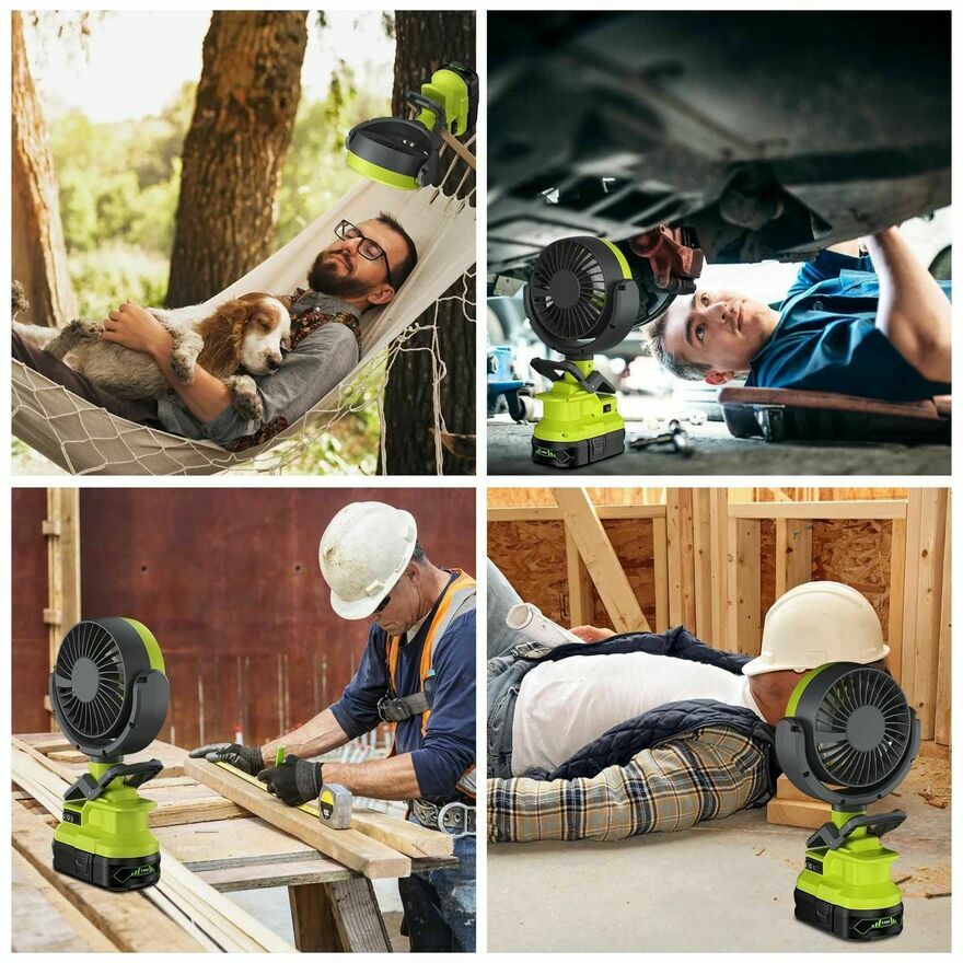Nowy wentylator z lampą LED, kompatybilny z akumulatorami Ryobi 18V(ONE+, np. 3.0Ah, 8.0Ah, 12.0Ah, brak w zestawie).