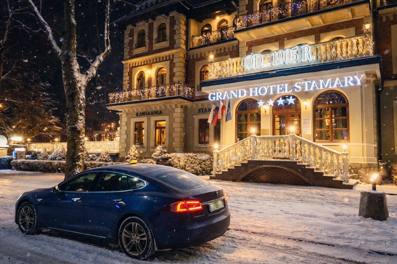 - Tesla Model S – nowoczesny, w pełni elektryczny samochód premium, gwarantujący cichą i dynamiczną podróż.
